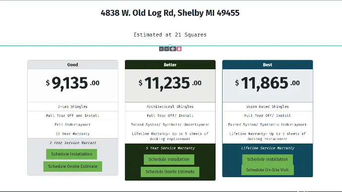 Provides landing pages, full function website builder, lead generation, estimate configuration tools, self-booking appointment functions, even the ability to purchase and schedule your own roof installation or repair.